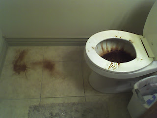 The food coloring. Not the first food coloring incident we've had. Thinking we learned from the first incident, we placed the food coloring for Keli's cakes on the top shelf of the pantry. The pantry door has a child lock on it. Yeah it worked real well. I still wonder what it tastes like...